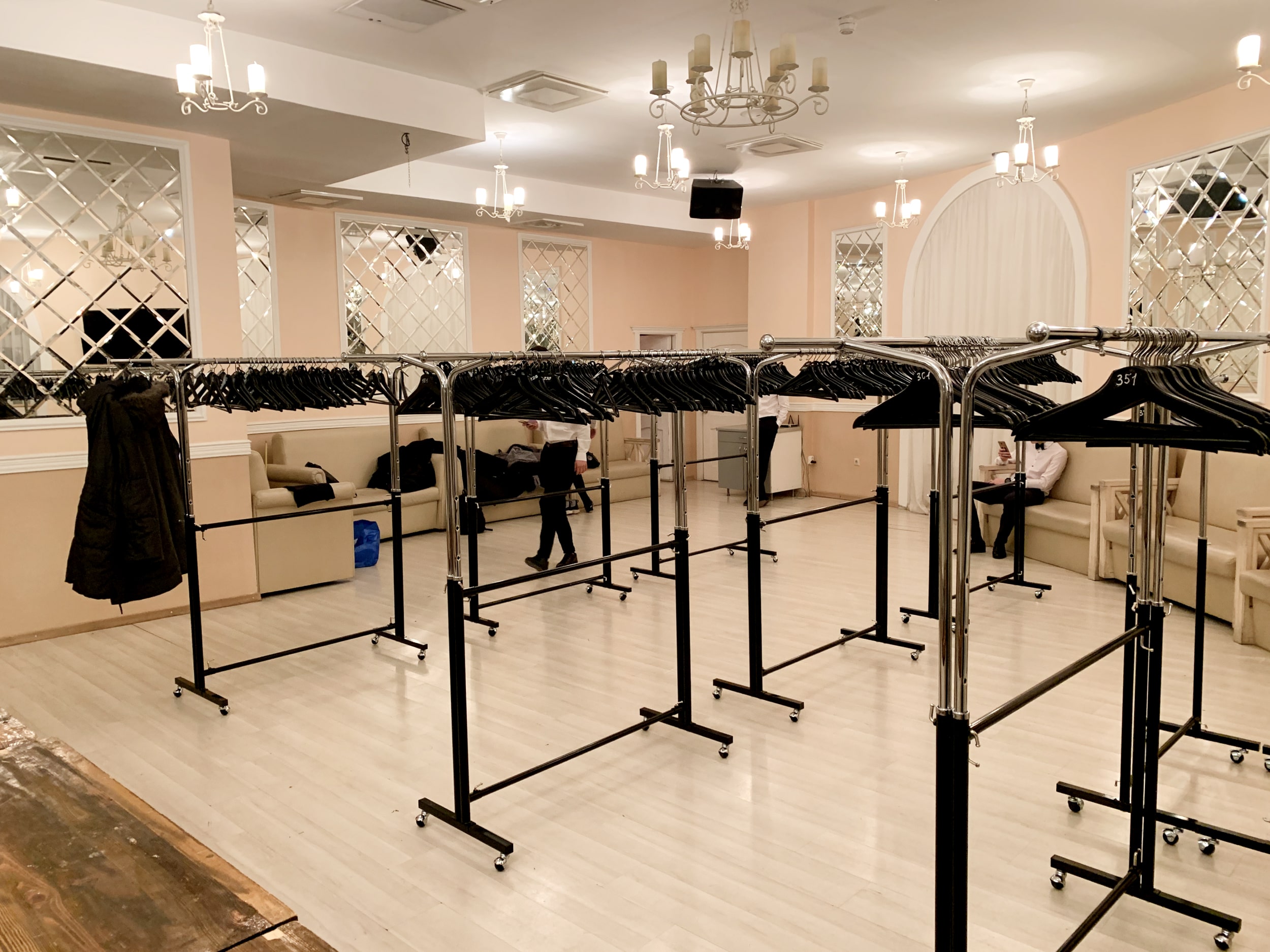 Не забывайте про этику на мероприятии. Гостям должно быть комфортно и приятно. Размещая выездной гардероб, стоит также предусмотреть дополнительные элементы, такие как зеркала и небольшие зоны для переодевания. Это добавит целом атмосфере уюта и позволит белым легко направлять гостей в нужное русло.