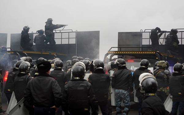 Позднее в Алма-Ате произошли стычки протестующих с силовиками. Участники беспорядков подожгли и разбили несколько полицейских машин. Казахские силовики, в свою очередь, использовали светошумовые гранаты и слезоточивый газ.
