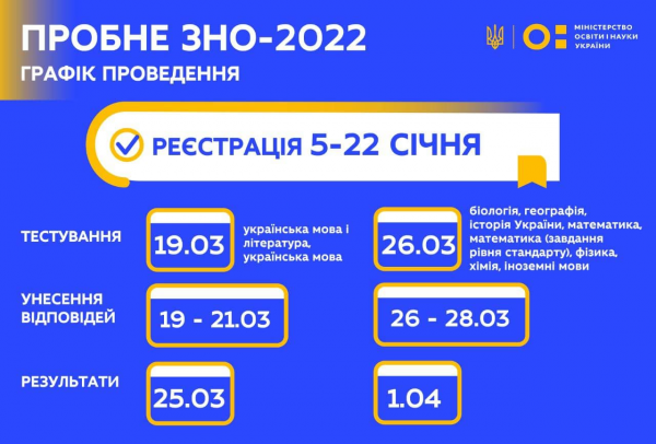 С 5 января по 22 января в Украине будет проходить регистрация на пробное ВНО. На него может зарегистрироваться любой желающий на сайте своего регионального центра оценки качества образования.